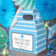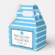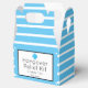 Perfectly fun bright blue and white seersucker striped hangover relief kit favour box that is customisable.