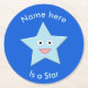This awesome paper coaster features a graphic image of a blue five pointed star with huge eyes and a big smile.