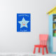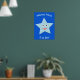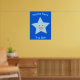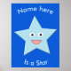 This poster features a graphic image of a blue five pointed star with huge eyes and a big smile.