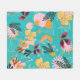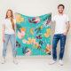 Bright blue floral pattern for her abstract cute pink and yellow Fleece blanket, matching products.