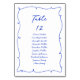 Modern Whimsical Wavy Bright Blue Hand Drawn & Handwritten Font Seating Chart Wedding Table Number.
