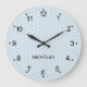 Bright and fun blue clock with black stylish numbers. Customisable name.