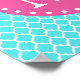 Chic, girly, trendy, Moroccan lattice trellis pattern in bright blue and white with a pink circle shape label frame featuring a customisable monogram template.