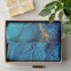Bright, vibrant blue ocean waves done in an alcohol ink style. Cerulean and aquamarine blue.