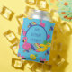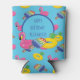 Keep your drinks cool as you sip them poolside with this personalised can cooler featuring a pattern of brightly coloured pool floats or pool tubes in the shape of a flamingo, a pineapple and a popsicle against a bright blue background. Use the template field to easily add your name or message to this pool party themed can cooler.