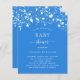 Bright blue background, decorated with white stars. Personalise and add a name and party details.