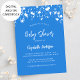 Bright blue background, decorated with white stars. Personalise and add a name and party details.