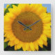 Bright Blue Sunflower Square Wall Clock