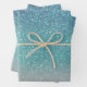 Bright Blue Teal Sparkly Glitter Ombre Gradient Wrapping Paper Sheet