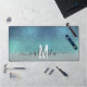 Bright Blue Teal Sparkly Glitter Ombre Monogram Desk Mat