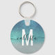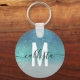 Bright Blue Teal Sparkly Glitter Ombre Monogram Key Ring