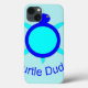This awesome iPad case features a bright blue turtle with big black eyes and a two-tone blue shell. He has little blue feet and a cute tail. There is text underneath the turtle that says turtle dude. This would make a fun gift for a male of any age.