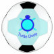 This awesome soccer ball features a bright blue turtle with big black eyes and a two-tone blue shell. He has little blue feet and a cute tail. There is text underneath the turtle that says turtle dude. This would make a fun gift for a male of any age.