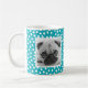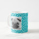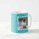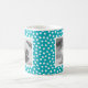 Cute personalised photo mug with a trendy white and bright blue dot pattern background. Add your own personal touch to a mug by adding photos of your kids, pets, and other family members.