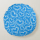 BRIGHT BLUE WITH WHITE HEARTS AND FLOWERS ROUND CUSHION