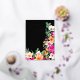 Elegant bright and bold modern spring summer flowers illustration with pretty oversized wild flower and brush script bridal shower with a modern calligraphy typography with bright neon pink, orange, green and yellow flowers on black background with real gold foil.