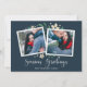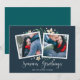 Elegant and festive holiday photo card frames two of your favourite square photos with a subtle deckled edge border and green and white holiday foliage peeking out at the corners. "Season's Greetings" appears along the bottom in white calligraphy script, with your names and the year beneath.