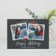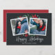 Elegant and festive holiday photo card frames two of your favourite square photos with a subtle deckled edge border and red and green holiday foliage peeking out at the corners. "Happy Holidays" appears along the bottom in white calligraphy script, with your names and the year beneath.