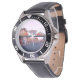 My husband loves the watch, he likes the dial, the graphics, the band, and it keeps perfect time.