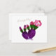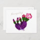 Postcard with purple green cactus, pink flowers pen illustration and text "Have a good day!".