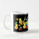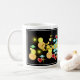Cheerfully decorated mug in bright and vivid colours with bubbles and hearts and rays of light to finish the day in your best mood