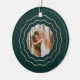 Personalize this elegant ceramic ornament with a photo on the front and a caption on the back, surrounded by a triple geometric border in faux gold foil on a rich forest green background. This chic design is perfect for commemorating a special year or a special "first."