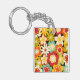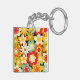 Bright Colorful Retro Cute Floral Pattern Key Ring