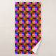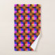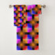 Bright coloured squares on black background bath towel set