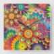 Bright Colourful Abstract Flower Pattern Square Wall Clock