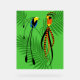 Colourful vector art of a pair of fictional exotic birds of paradise with long tail feathers and bright plumage on a green jungle like background.