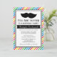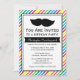 Moustache Birthday Party Invitations with bright colourful stripes in white, yellow, red, blue, green, pink, and orange for hipster boys who heart staches!