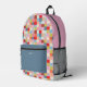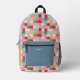 Bright and bold colourful rainbow chequered squares pattern printed backpack with optional personalisation.