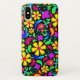 Pretty Samsung iPhone X case, with whimsical graphics of a bright colourful floral pattern, on a black background. Customise to add your own text.