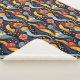 Fun brightly coloured sherpa blanket in strange shapes in shades of blue, orange, yellow and black.