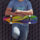Feel the Tropical Vibes of this bright and vibrant multicolored skateboard of abstract palm tree leaves in purple, blue, green, yellow, orange and red. All the colours of the rainbow with a twist of the Tropics are on this colourful and fun skateboard. Personalise with own your Name or text.
