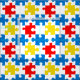 This colourful puzzle piece pattern features interlocking shapes in bold primary colours—red, yellow, blue, and white. The high-contrast design creates a lively and dynamic look, with each piece fitting together seamlessly to form a playful repeating motif. The cheerful palette and clean geometric layout give it a bright, modern vibe, making it perfect for anyone who enjoys vibrant, eye-catching patterns with a touch of nostalgic charm.