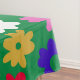 This cute and colourful tablecloth features a fun Scandinavian flower pattern in bright green, blue, pink, and yellow.