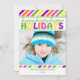 Modern and bright, this pink, green, purple, orange and yellow striped Christmas holiday photo flat card will delight your friends and family. Easy to create your one of a kind custom holiday card with our photo and text template. Simply add your own picture and customise the text. For best results use a large or high quality photo. Not sold in stores, our designs are exclusive! Fresh and fun design stands out among the crowd. 5 x 7 inches, comes complete with envelope for each card BRIGHT Colourful Stripes Christmas Flat Card Non-denominational