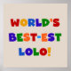 World's Best-est Lolo T-shirts, mugs, cards, stickers, tote bags, magnets, stickers, and other lolo gear for the world's best lolo with bright multicolored text design.