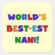 The world's best nani will love our World's Best-est Nani T-shirts, hoodies, mugs, cards, nani keepsakes, magnets, stickers, and more with a multicolored text design! Great gifts for great grandparents!