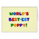 Bright colours text World's Best-est Poppy T-shirts, mugs, hoodies, cards, tote bags, magnets, keepsakes, and other world's best poppy gear.