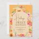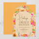 Bright Country floral watercolor Sweet 16 birthday invitation on orange, with a rustic country floral touch featuring pretty garden country sunflowers, rose and flowers around the arch.