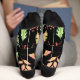 A pattern of vibrant autumn leaves on a black background. Space for your name or text in red and green on the foot. Personalize the text to make these socks your socks.