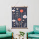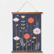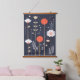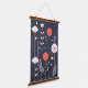 A collection of colourful flowers and circles rise against a navy backdrop, showcasing a modern and artistic representation of nature, featuring various shapes and vibrant colours.