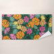 bright floral pattern on a green background. Vinta Bath Towel