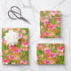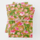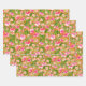 Three sheets of wrapping paper feature tropical pink and coral hibiscus flowers on an orange background (or any colour you choose.) MORE colours in our store.