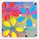 Bold and bright flowers intertwine their stems to showcase blue, red, and yellow flowers in a modern design.