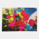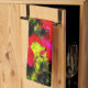 This Kitchen Towel will add some colour to your life. The artwork is an original abstract photograph by ZoeSPEAK of a bougainvillea bush in the afternoon sunlight. The flowers on the bush are actually tiny and white. The brightly coloured parts which surround them are called bracts. In this photo, the bracts are a deep hot pink, almost glowing. Green leaves and a cool blue shadow on a pale yellow stucco wall complete this colourful image.