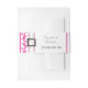 Chic pretty bright dark fuchsia pink and white filigree lace old vintage damask pattern and white faux satin ribbon and silver buckle, with a customisable coloured colourful background, choose your background colour from a range of custom colours to create your own totally different look to compliment your coordinated wedding stationery set. This is elegant sophisticated, and stylish plain simple customisable wedding invitation belly band, easily personalised with the bride and grooms names or monograms to the templates to create your own classy unique modern contemporary feminine girly lacy patterned custom product for your special marriage occasions, events and celebrations. Visit the PERSONALIZED_ WEDDINGS STORE for matching coordinated wedding suite sets.