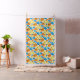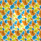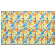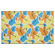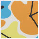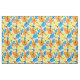 Vibrant fabric design featuring a seamless mid-century pattern made of abstract shapes in orange, yellow, blue and black on a white background. The colour of the background is fully customisable.